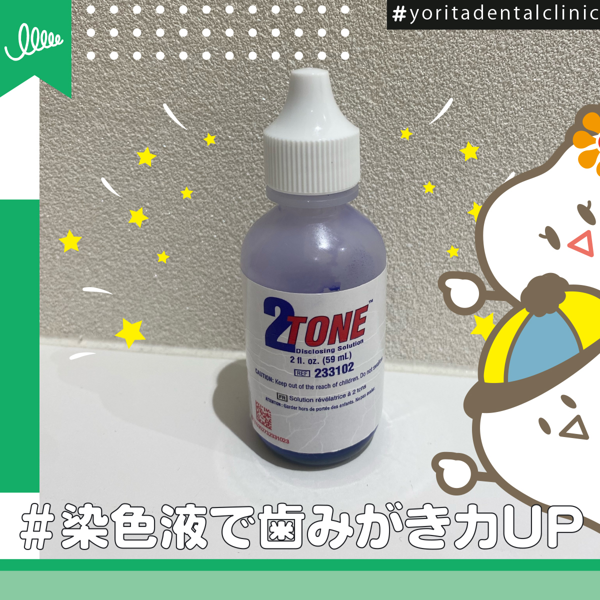 カムカムクラブ(子供の虫歯予防)や、歯のお掃除の際に使用する染色液は、