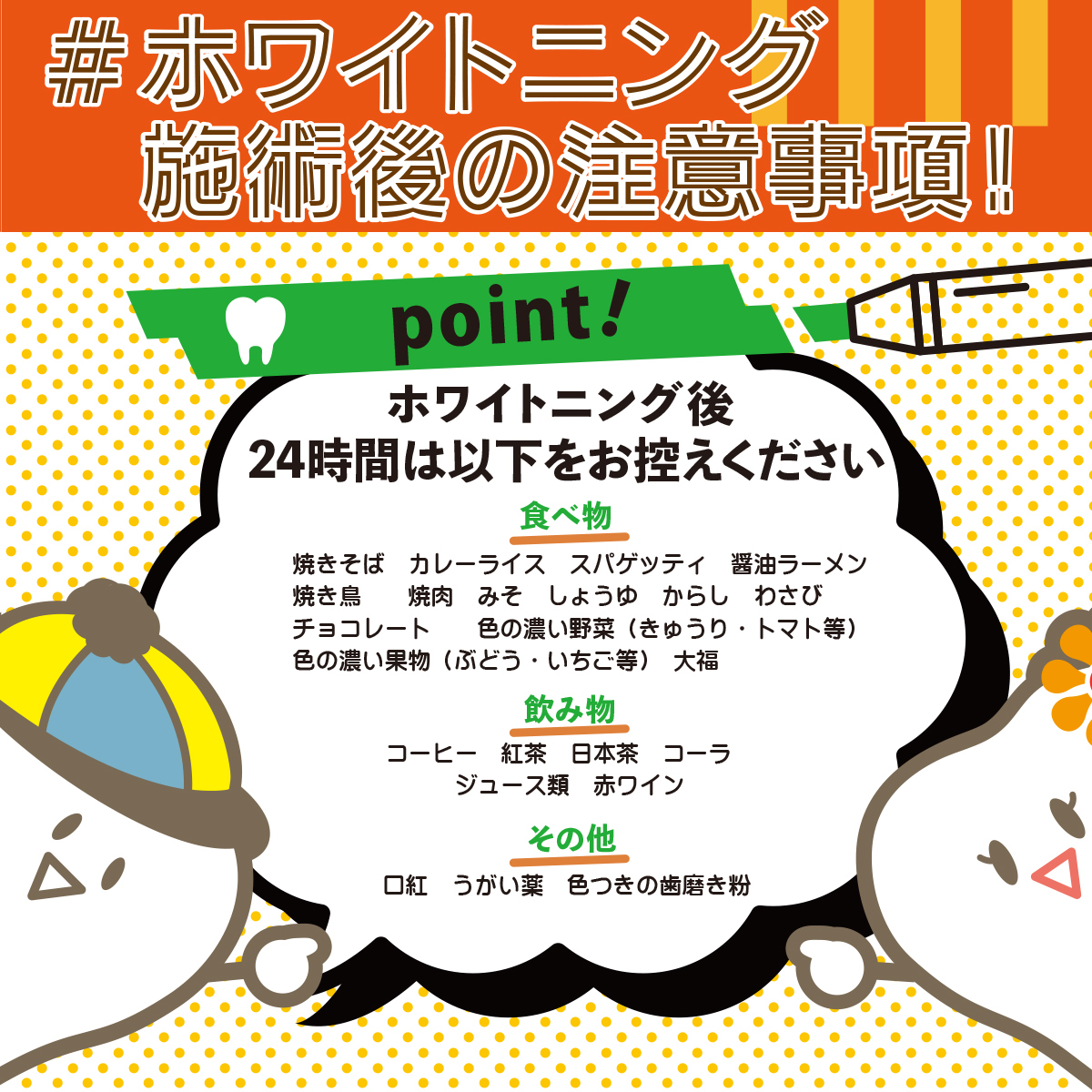 ホワイトニング後の食事は、施術の結果を長持ちさせるためにも重要です‼️