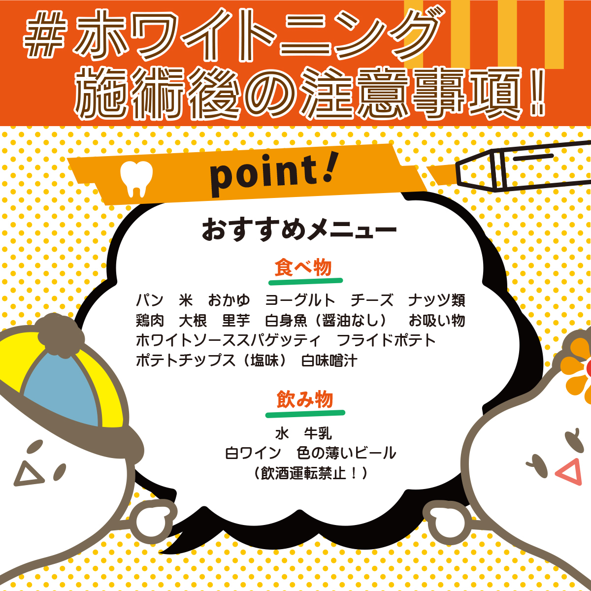 ホワイトニング後のおすすめメニューはヨーグルト、鶏肉、牛乳などの色が薄い食べ物です🥛