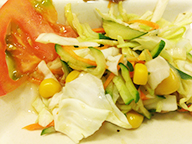 サラダは、キャベツ、人参の千切り、コーン、きゅうりを