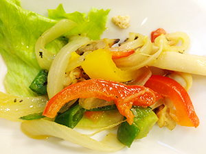 パプリカとイカのイタリア風ソテーは、パプリカの鮮やかな色がとても美しい一品。