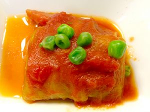 ロールキャベツは、コンソメスープとトマトでこっくり煮られており