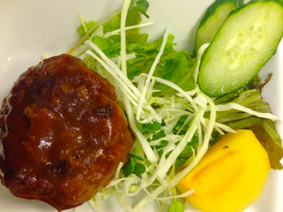 ギュッと肉の旨味が詰まったハンバーグは、玉ねぎのシャキシャキした歯応えと
