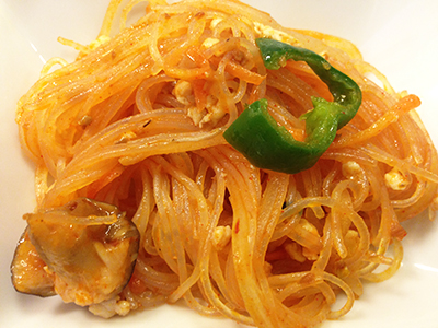 春雨のつるつるした歯応えと喉越しが、これまた甘辛い味付けに