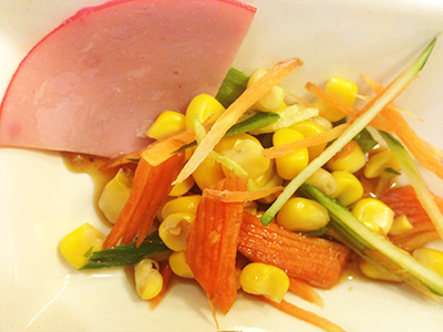 カラフルサラダは、コーン、人参、きゅうりを使った彩り鮮やかなサラダ。