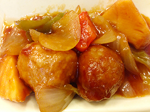 酢豚風肉団子は、むっちりとした肉団子を、シャキシャキとした