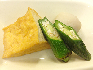 厚揚げと野菜の煮物は、厚揚げとオクラ、小芋を煮込んだ、