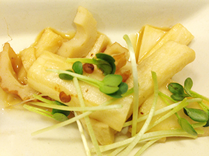 山芋のわさび和えは、シャキシャキの山芋とちくわ、カイワレ大根を