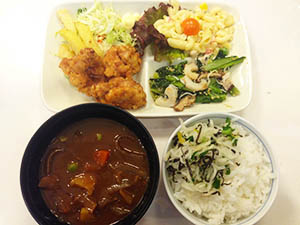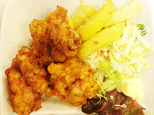 柔らかくジューシーな、鶏の唐揚げが本日のランチに出るとわかっていたので
