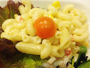 マカロニサラダは、程良くアルデンテなマカロニに、人参、グリンピース