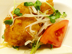 鶏唐揚げのポン酢がけは、からりと揚げた鶏肉の唐揚げに、