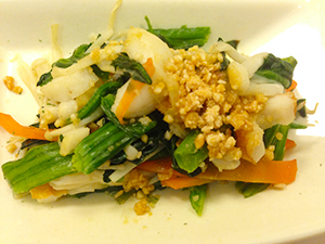 ほうれん草の胡麻和えは、ほうれん草だけではなく、えのきや人参