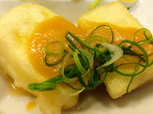 焼いてもいいのですが、揚げ出し豆腐風に調理した方が、冷めても美味しく