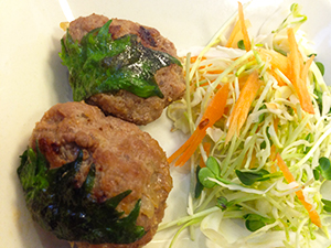 食べやすいサイズのつくねを、大葉で巻いたおかず。