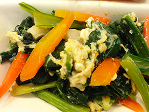 小松菜の玉子とじは、小松菜と人参のシャッキリ感がまた美味しく