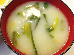シェフ岩本さんの旦那様が作った、チンゲン菜を使ったスープです。