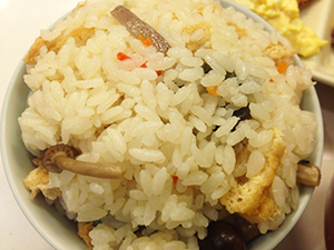 山菜と野菜がたっぷり入った、炊き込みご飯はスタッフも大喜び。