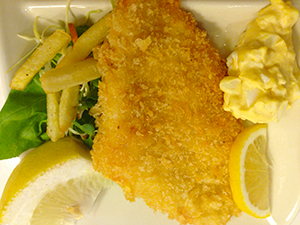 大きな白身魚のフライは、衣はサクサク、身はふわふわで美味しく