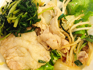 スタミナ焼きは、野菜とお肉がたっぷりのおかず。