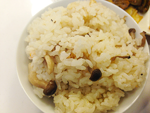 しめじたっぷり、旨味たっぷりのきのこご飯は、素材から出た出汁が