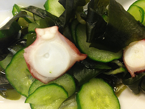 きゅうりとしらすの酢の物は、わかめとタコもくわえてボリュームアップ!