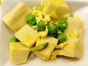 高野豆腐の玉子とじは、お出汁がよくしゅんで甘い高野豆腐は