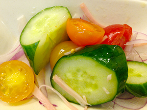 しっかりと漬かったきゅうりとミニトマトは、野菜も甘さも