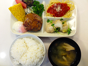 ハンバーグにミートスパゲッティの組み合わせは、大変豪華で