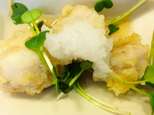 小芋のみぞれ煮は、小芋を衣をつけてサクッと軽く揚げ、大根おろしと