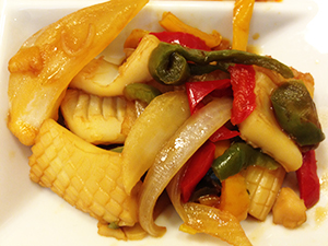 ぷりっとしたイカの食感と、シャキシャキした野菜の歯応えが