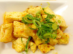 麻婆豆腐は、木綿豆腐を使い、しっかりとした歯ごたえ。